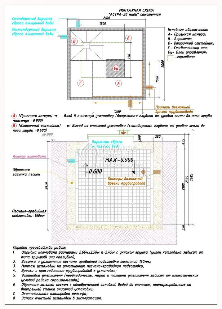 Насос для откачки: нет (самотечный сброс)